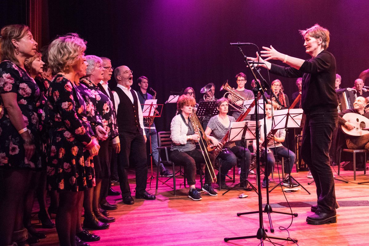 Na deze dromerige ervaring is het tijd voor weer iets totaal anders. Iets wat bovendien symbool staat voor het hele festival en veel van waar CCO voor staat. Het is tijd voor De Grote Improvisatieshow. Wat gebeurt eer als je een smartlappenkoor, een harmonieorkest, een West-Afrikaanse percussiegroep, een Namibische rapper/zanger en een Surinaamse zanger samen met Catching Cultures Orchestra op één podium zet? Dat is in feite het experiment dat er wordt aangegaan, met als middelpunt onze eigen Hermine, die alles dirigeert. Wie hoorde er al eens een rap begeleid door accordeon en darbuka, gevolgd door een stukje marsmuziek? Of een smartlap met een stuk of vijf djembé’s erbij? Het klinkt onvoorstelbaar en toch gebeurt het en meer allemaal in die circa 45 minuten op het podium. Dat zulke uiteenlopende muzikale stijlen en achtergronden tóch tot één geheel konden komen maakt zichtbaar indruk op deelnemers en publiek. Een bijzondere afsluiter van de eerste helft van het tweedelige festival.