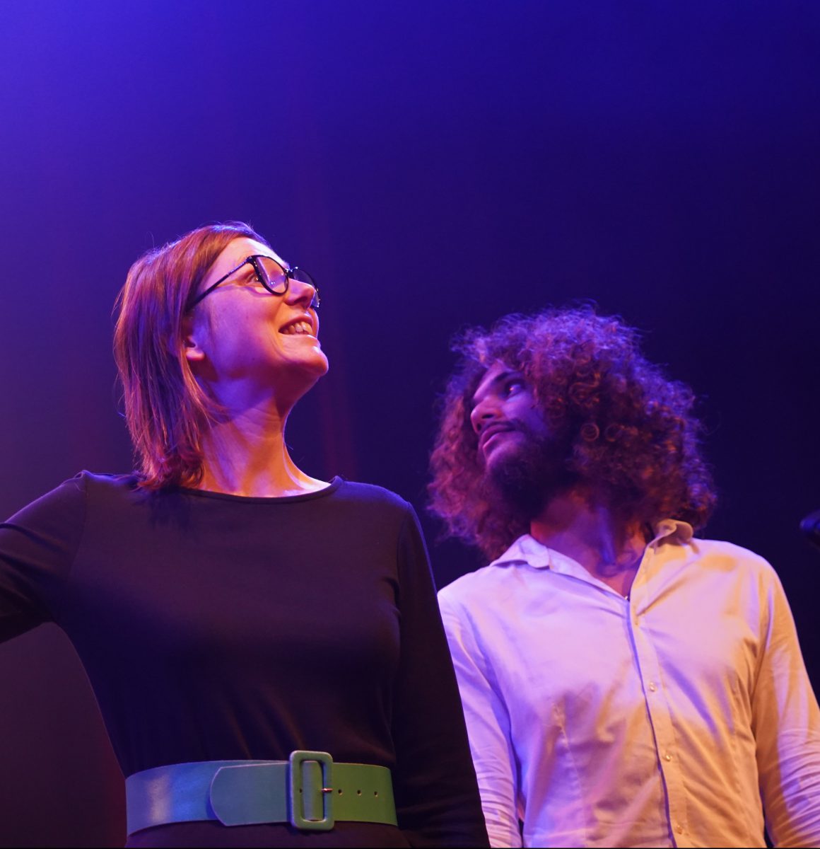 Er verzamelen zich onderhand steeds meer muzikanten in het gebouw. Een wirwar van klanken doordringt de gangen en verplaatst zich langzamerhand naar de theaterzaal voor de soundcheck. Veel van onze orkestleden kennen de zaal vooral als onze oefenruimte, maar vandaag hullen lange donkere gordijnen en paarse, rode en blauwe lichten deze in een theatrale en bijna mysterieuze gloed. De sfeer is alvast aanwezig.